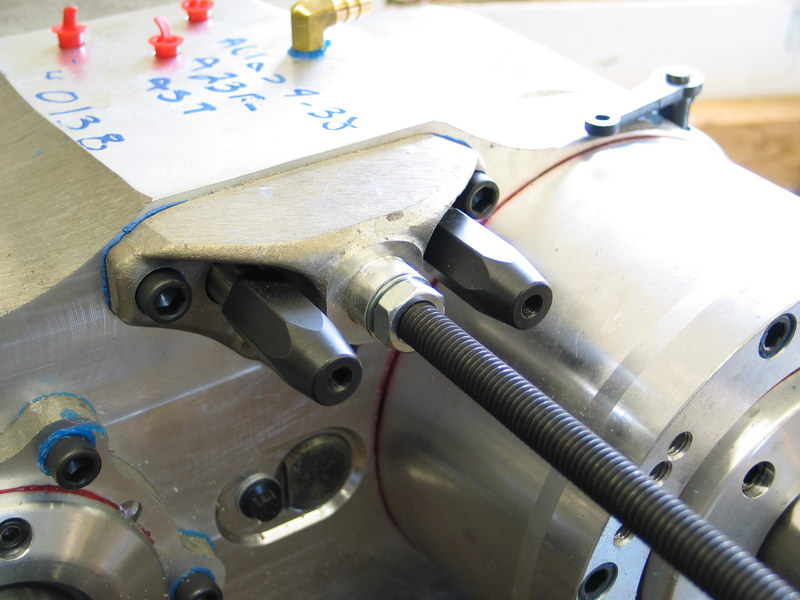 With that done, I was left with just the two shift rail adapters and the threaded rod attached to the case. |