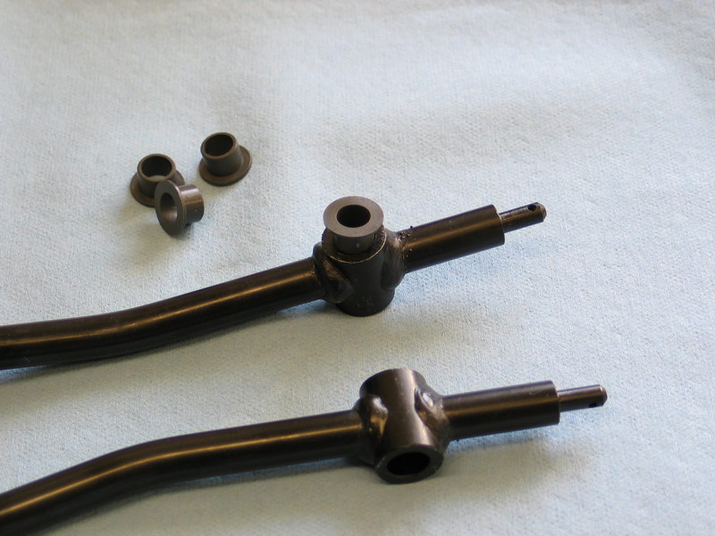 Next I modified the extension tube bracket and the extension tube by adding to each a couple of tabs with holes the same size as the ID of the bushings in the shift levers. |