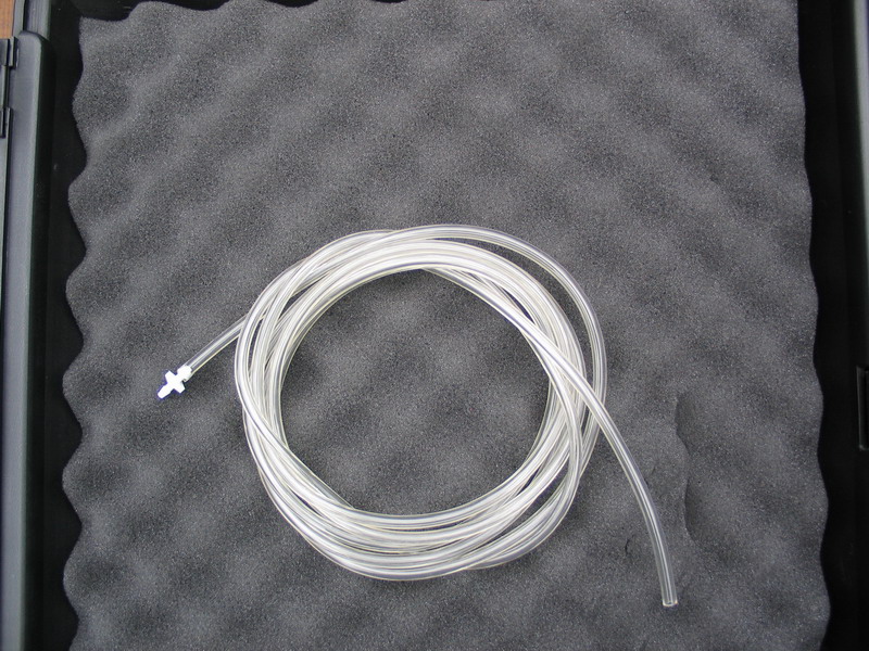 This is the 10-foot gas hose. The open end fits over the gas fitting supplied in the kit, and the small plastic nipple attaches the hose to the RWII cables near the quick-disconnect. |