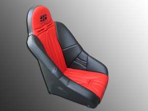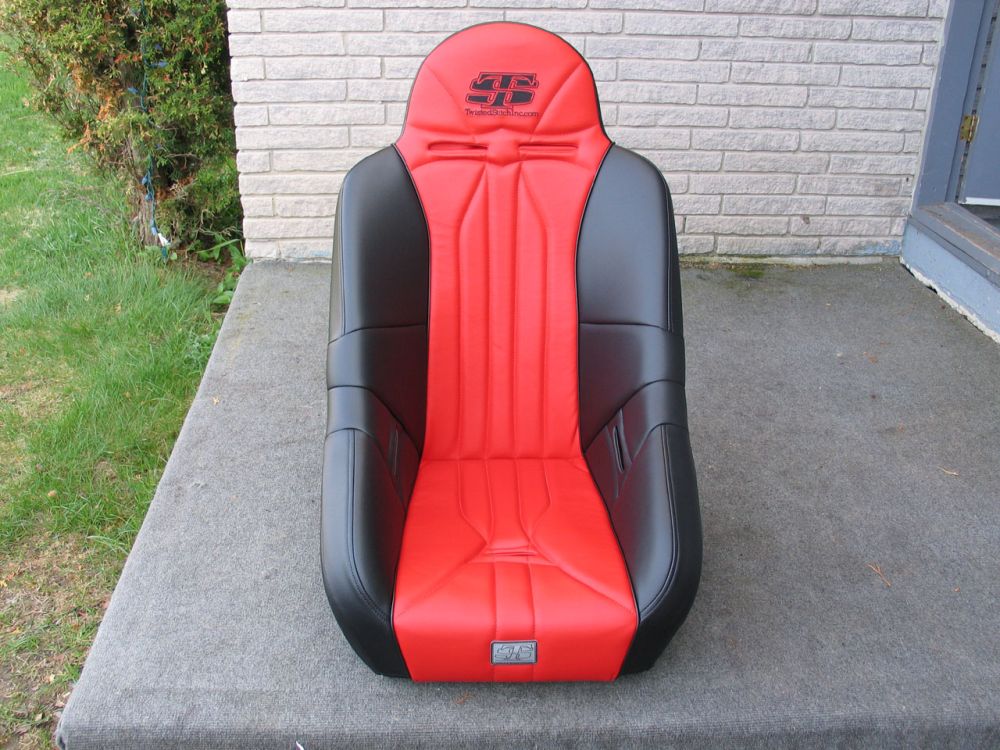 "...a high-containment competition suspension seat with a high-sided bolster design, integrated sub, lap, and shoulder-belt slots and a fixed headrest. This is the ultimate seat for aggressive terrain or racing applications. Like all Twisted Stitch seats, the Pro utilizes multi-density foam designed for support and comfort, and comes in an array of custom colours manufactured with only the highest quality materials." |