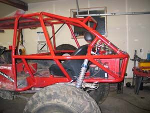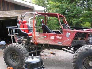My buggy, the Wolf, wasn't originally designed to be a 4-seater. After the kids arrived and were big enough to ride along, I wedged a couple of kiddie seats behind the front seats in something of a booty-fab style.