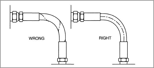 When determining the length of hose assemblies, provide sufficient length to prevent bending strain from localizing at the back