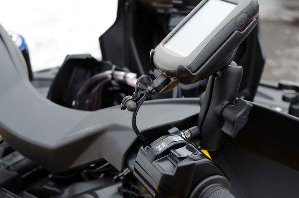 Everything tucks up neat under the factory panels and the result is neat GPS power right at the handlebars where I need it. |