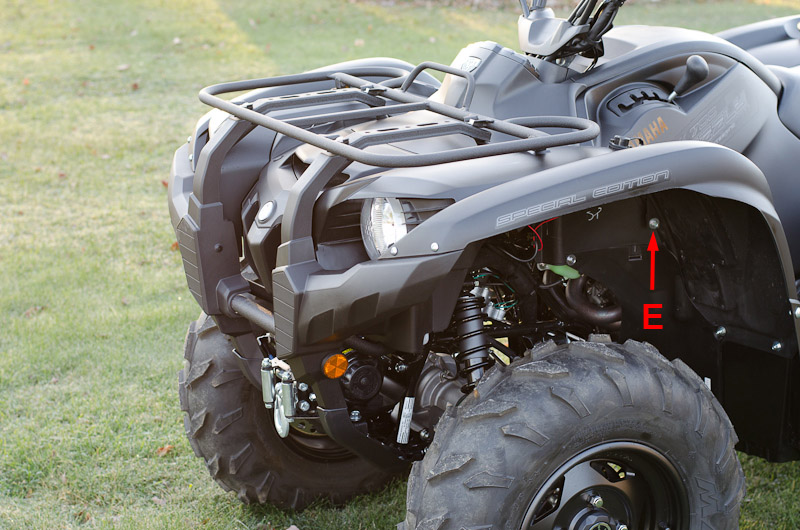 There is a spring-loaded pin (D) that prevents the rotation of the shift guide (and therefore the shift) by intefering with the slotted tab on the end of the shift guide (E).