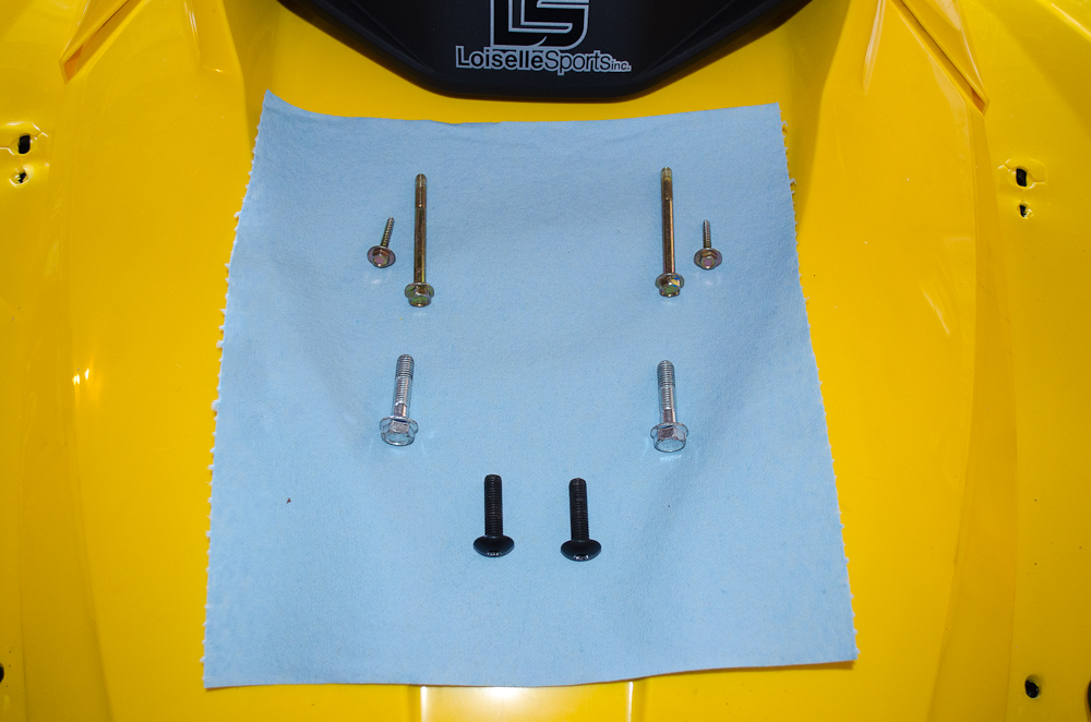 Only six need to be re-installed as the two smallest screws (top row, extreme left and right in the pic) are simply "assembly-line" fasteners used at the factory to hold parts together while the ATV is being assembled, but serving no useful purpose after the machine is built. |