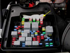 The cover simply pulls off to reveal the fuses and relays. |