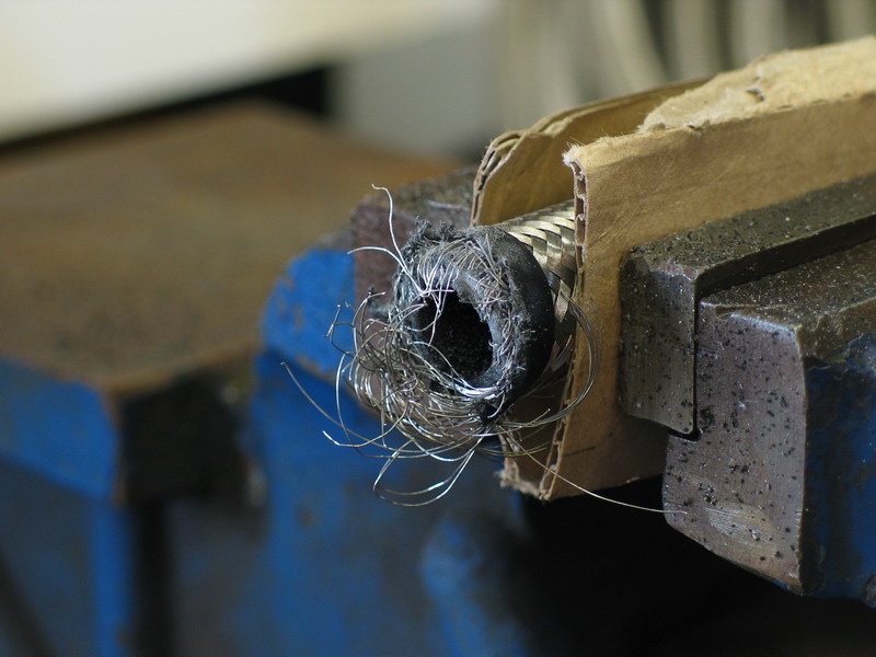 To avoid crushing the hose, it is best to clamp the socket in the vice and thread the hose into the socket.