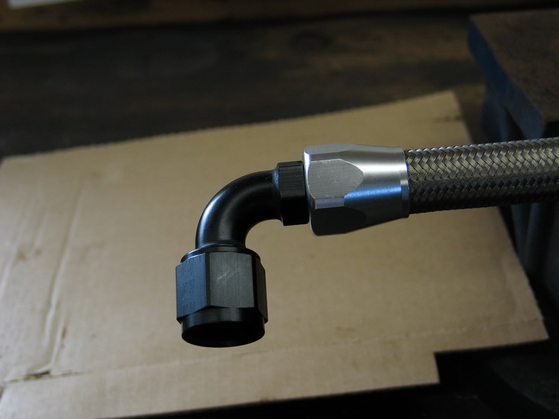 The completed hose assembly is very easily installed in the vehicle - one of the many beauties of AN style hose-ends.