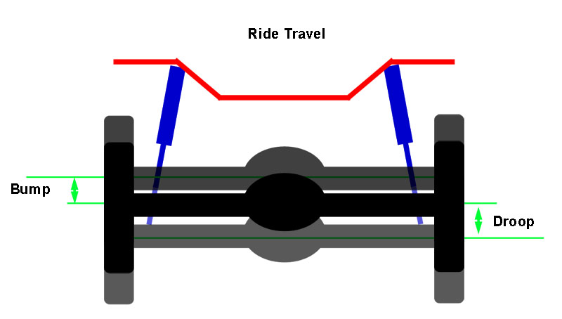 (The term “ride” also has another distinct and important definition in suspension theory. It is the term used to describe the motion, or travel, of the suspension when both wheels on an axle travel equally together in the same direction, as in when both wheels on a solid axle hit a bump at the same time. Normally, context alone will be sufficient to determine which definition of “ride” is implied. Where there may be any doubt or confusion, I shall use the term “ride quality” for the qualitative description of what it feels like to ride in the vehicle, and “ride travel” to describe the movement of the suspension when both wheels on an axle travel together equally.)