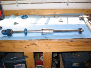 Depending on the pressure used and the diameter of the rod, gas charging can also cause the shock to provide a small increase in the spring rate of the suspension (in fact, if the vehicle were light enough, the rod diameter large enough, and the pressure high enough, the pressurized nitrogen alone could act as the spring – hence airshocks, but I digress). This mild boost in spring rate is caused by the pressurized gas acting on the rod through which there are, obviously, no orifices; as shown at left. Therefore, the larger the rod is in diameter, the larger the area for the pressure to act against. This gas pressure acting on the rod through the centre part of the piston is also the reason why an uninstalled, unloaded, gas-charged shock absorber will extend on its own.