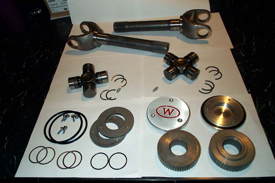 axles, U-joints, Warn 35 spline drive flange kit, kingpin rebuild kits,