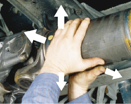 in the transfer case yoke. If the pinion end of the driveshaft were