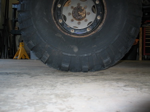 up, completely unload it so minimum weight will rest on the tires. The surface