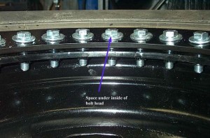 We were having a discussion online about how to alleviate the problems of the "coning" which results in the uneven bolt heads. A lot of suggestions centered around placing something under the inside edge of the clamping ring, so that the outer locking ring could clamp down more evenly. One clever guy suggested: