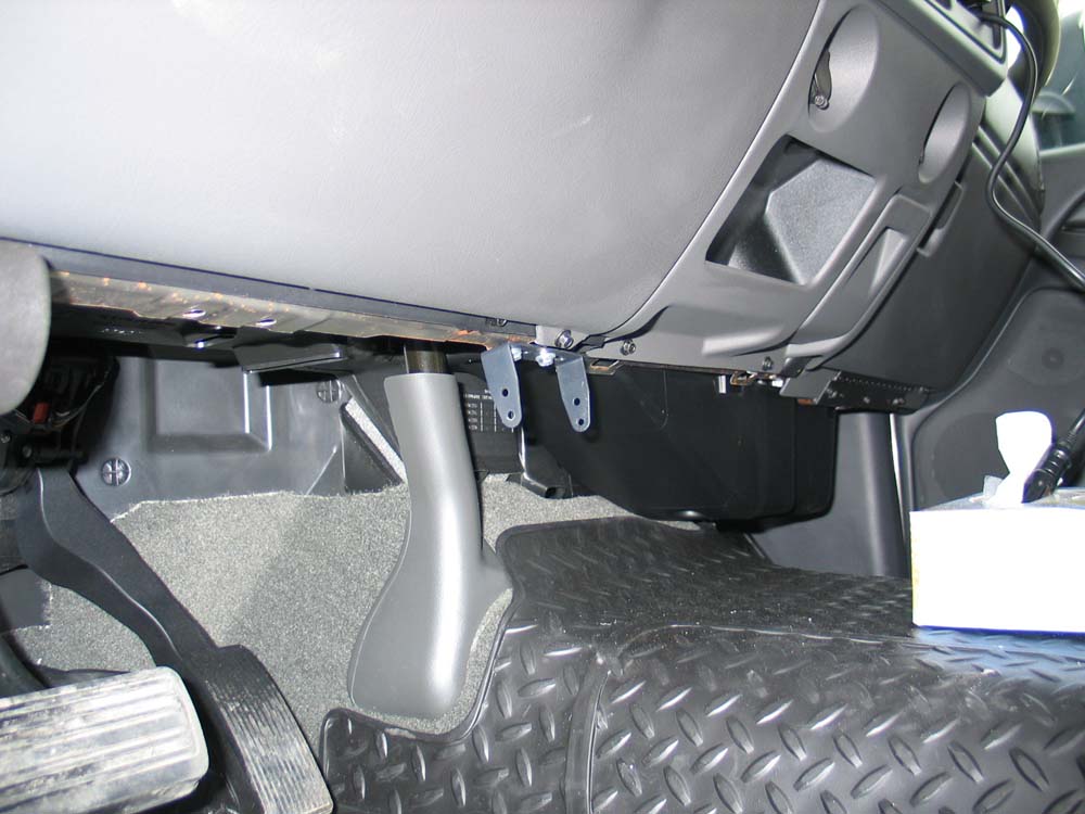 I attached the mounting bracket to the bottom lip of the dash with a couple of self-drilling screws.